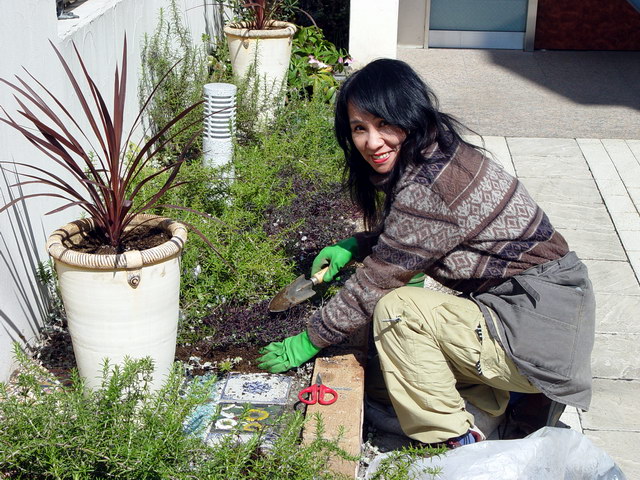 ガーデナーの写真も撮っておきましょう。庭の前に立ってニッコリ、という当たり前のではなくて、何か作業をしているところのほうが面白い写真が撮れるかも知れません。 |
