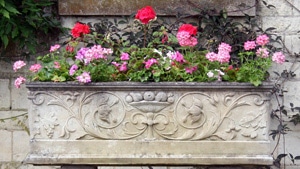 英国は石やレンガなどの素材で家がつくられているため、石や、石に見せかけたコンクリート製のコンテナをよくみかけます。