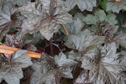 今回はプランターの足元に、もうひとつの木のプランターを置き(下にレンガなどを置いて水はけ良く)、比較的日が当たりにくいことを想定して、シェードプランツやカラーリーフプランツなど、主に葉を楽しむ植物を入れています。