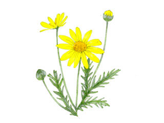 銀緑色の葉の中で、マーガレットに似た黄色の花がひときわ目立ちます。秋から翌年の初夏まで、長く咲き続けます。日当り、水はけの良い砂質壌土に植え付けます。過湿を嫌うので、長雨時は軒下に移して雨除けしましょう。冬は明るい室内に取り込むか、霜除けをすると良いでしょう。生育が早いので早めに大鉢に植え替えてやりましょう。大株になると茎は木のようになります。夏から秋の挿し木でふやすことができます。