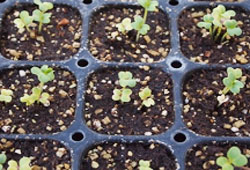 セルトレイまきは、1穴に2~3粒まきを行い、うすく土をかけたら手で上から軽く押さえます