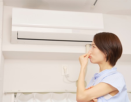 - ✔ エアコンをつけると、カビ臭い・ホコリっぽいニオイがする…