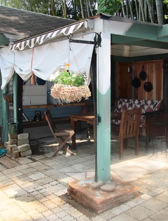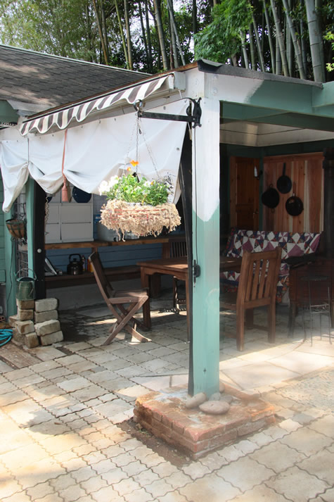 中では火を使うので、防炎シートを雨よけカーテンとして、取り付けています。