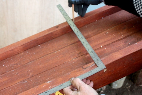 穴を開ける位置(手前と奥)をサシガネで確認します。 |