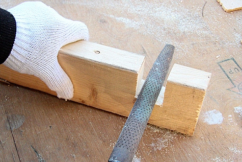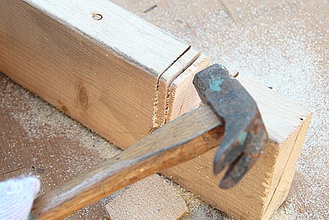 ハンマーで木端を横に叩き、切り込みを取り除きます。 |