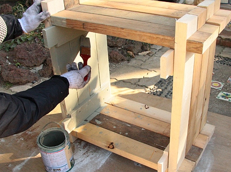 BOXの縁は、油性のオフホワイトを塗ります。 天板は油性のオフホワイトを塗ります。 |