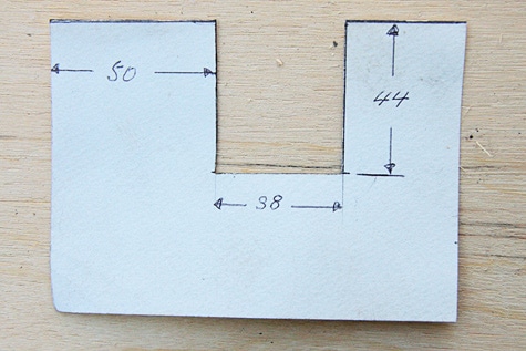 <かみ合わせ部作り> かみ合わせ部分を作ります。 まず、切り取り箇所の型紙を作ります。