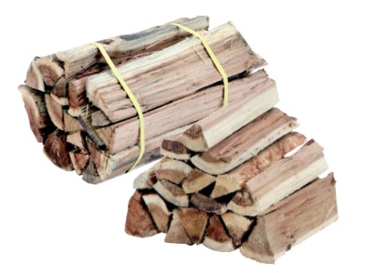 着火用の細割薪、火持ちの良い広葉樹薪、国産の太割薪。