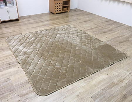 - ■ポリエチレンシートが床からの冷気を遮断し、身体やこたつからの熱は逃さずに反射してあたたかい。電気いらずで省エネ効果。