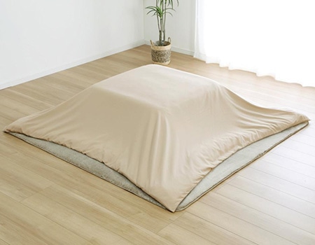 こたつ布団は『テーブルのサイズ+110~130cm』の物を選びましょう。ぴったりサイズなら+110~120cm、ゆったりサイズなら+120~130cmが良いでしょう。