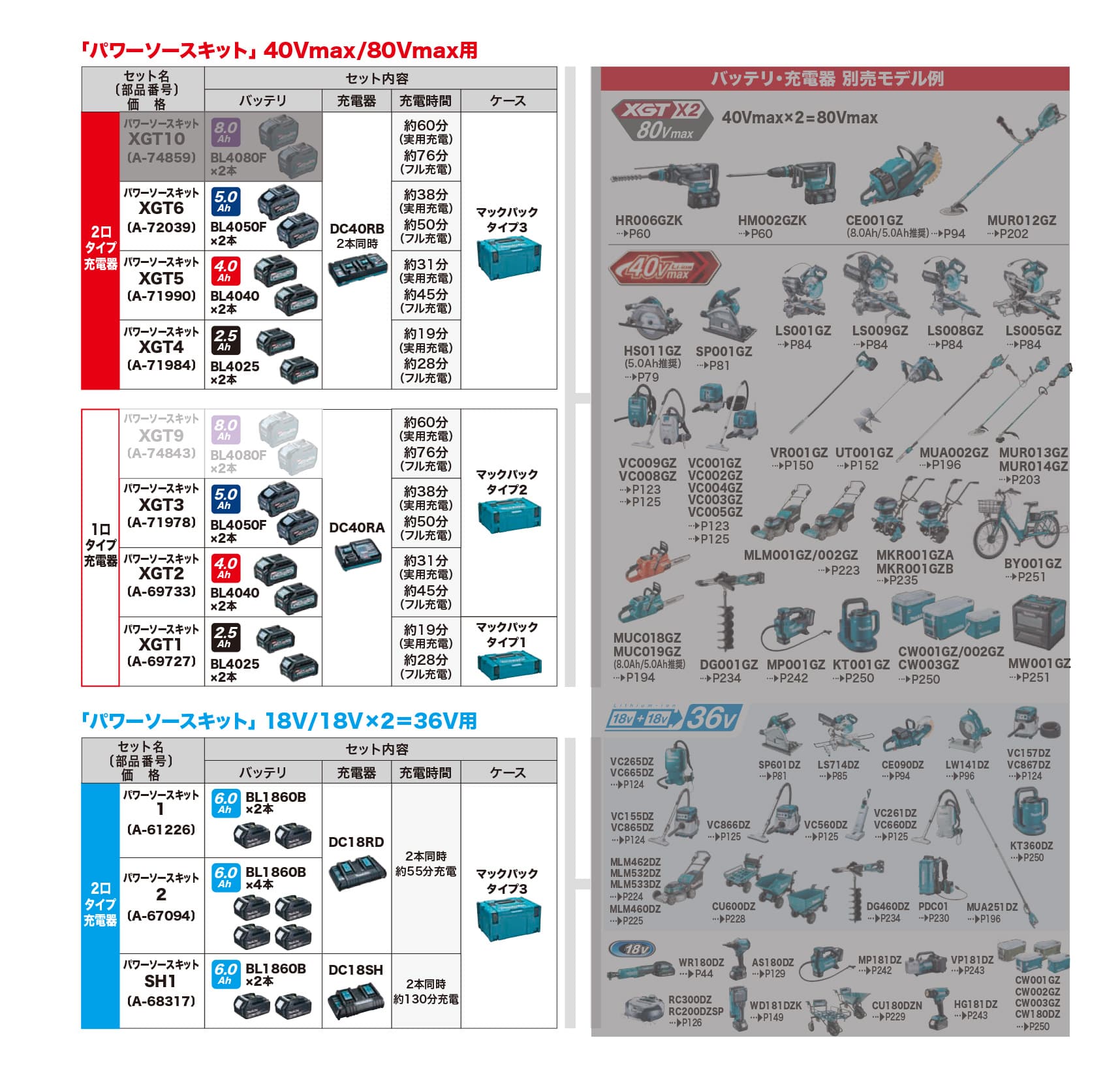 バッテリ・充電器一覧表