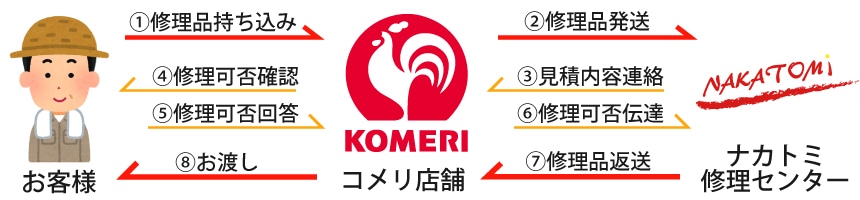 全国に1200以上あるコメリの店舗で修理の受付が可能です。