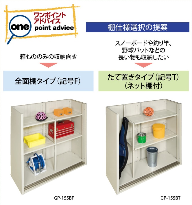 物置で5種類、収納庫で4種類のデザインから