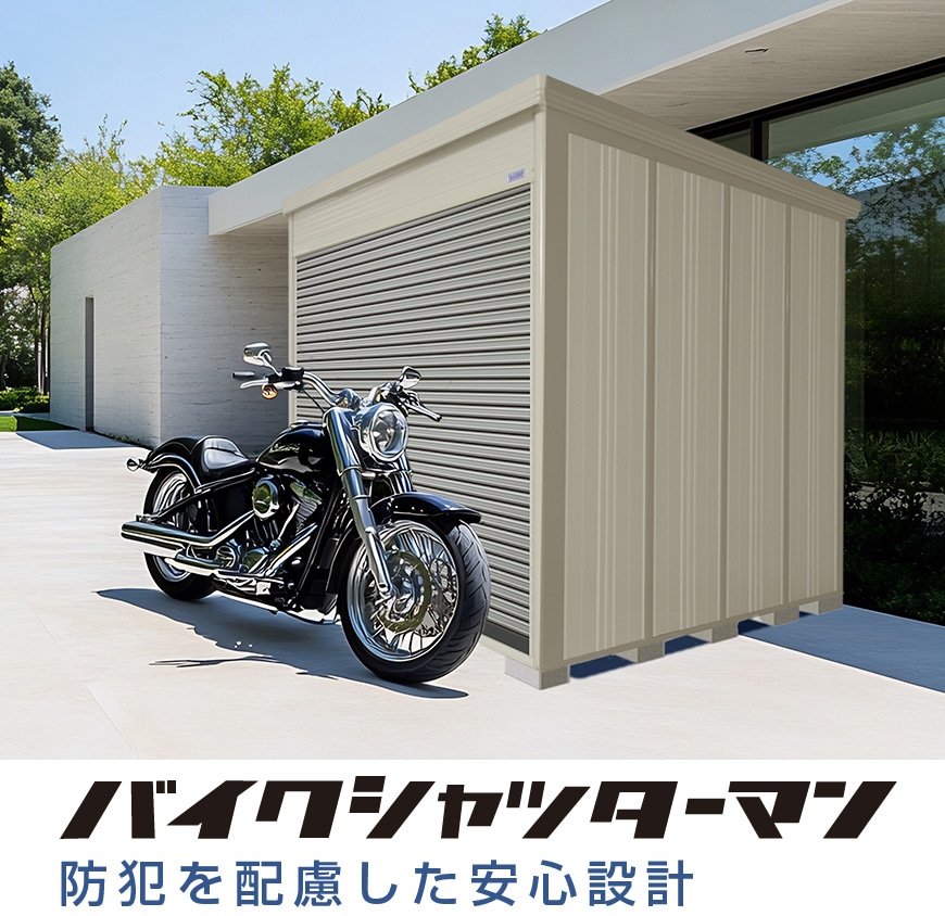 ・自動車など大きい物の収納や、多量の荷物の出し入れには開口部の広い巻き上げシャッター扉がおすすめ。