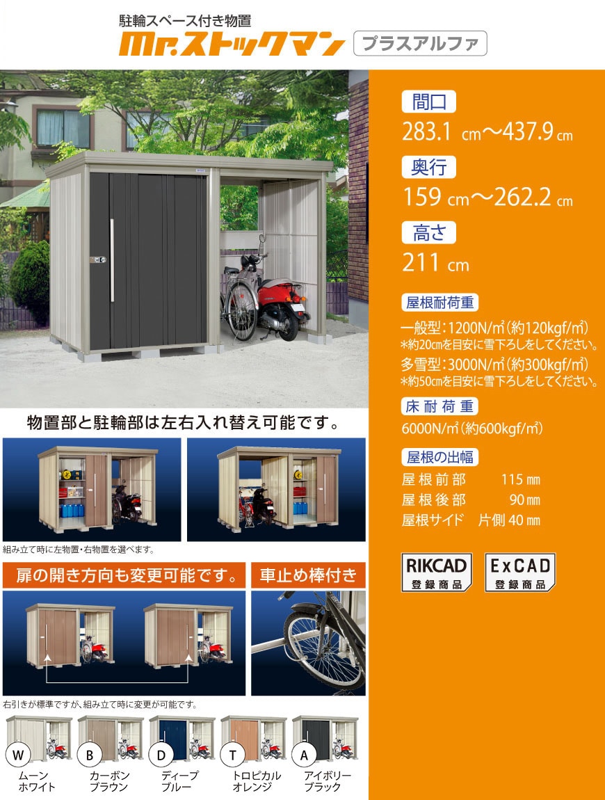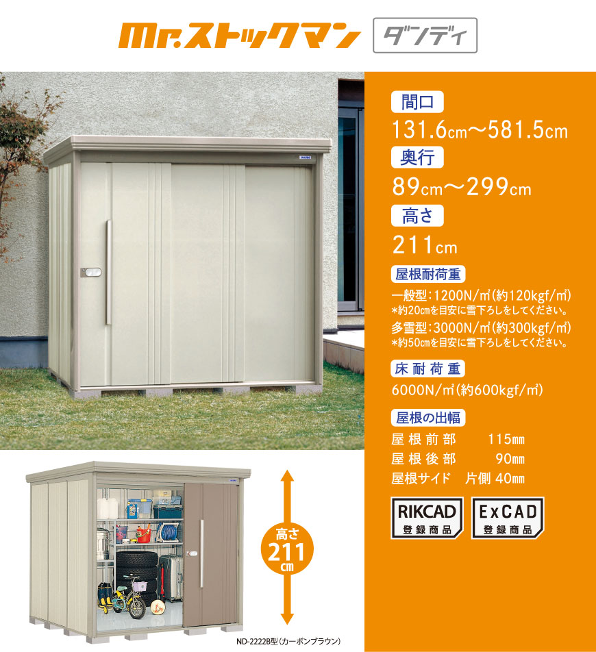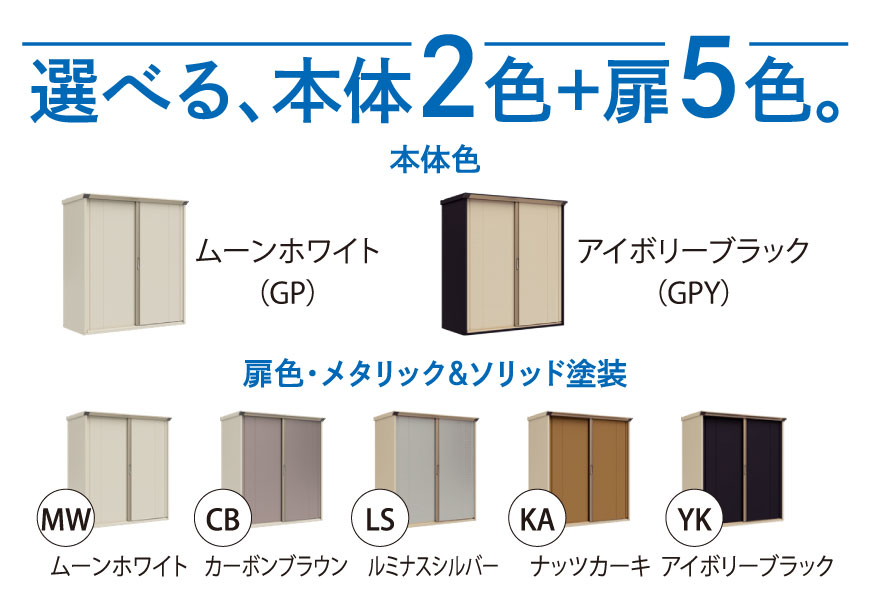 お買い得なオリジナルモデル物置。扉は2色(セピアグレーとカカオブラウン)から選べます。丈夫な柱構造を採用。扉は連動吊り戸方式。たて樋標準装備。