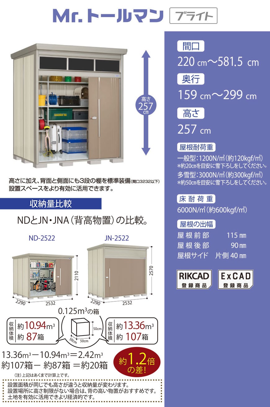 開口間口1376 高さ床板上1900土間天(mm)開口301.5cm 奥行159cm 高さ211cm 床面積4.79ccm(1.45坪)