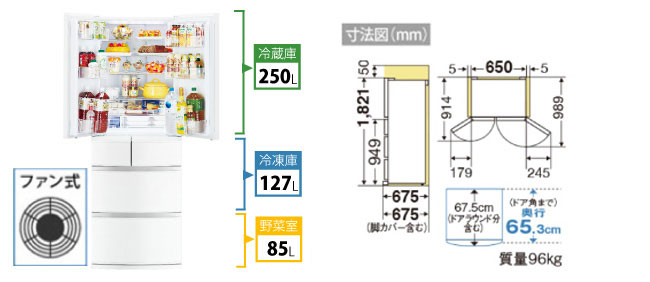 三菱電機は、最近の傾向であるコンパクトながら大容量冷蔵庫を先駆けたメーカーとなりますので、家族向けの大容量をお探しなら、三菱電機の冷蔵庫がおすすめです。