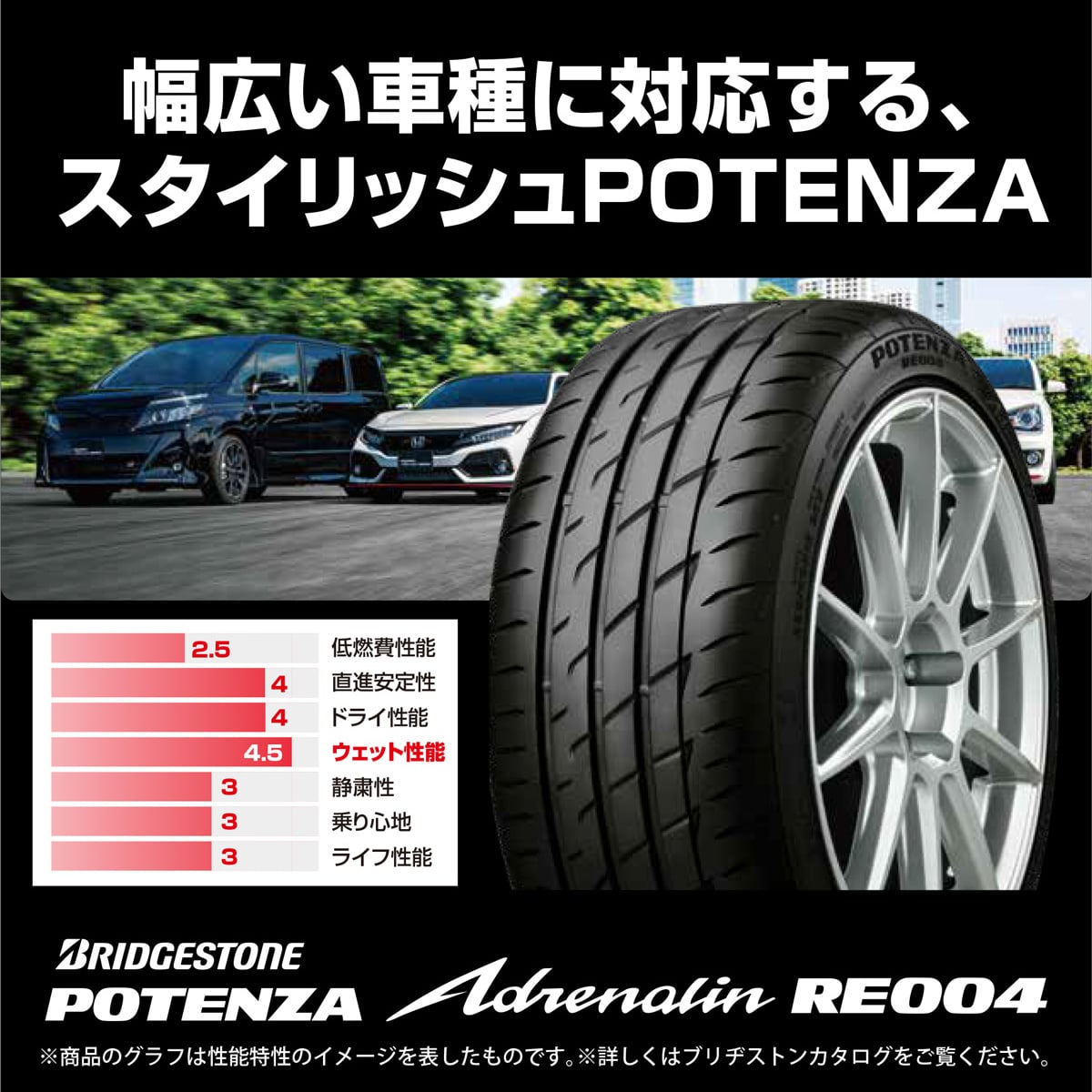 高い排水性を確保し、耐ハイドロプレーニング性能にも配慮。Adrenalin RE004専用コンパウンドがウェット路面での操縦安定性に貢献。