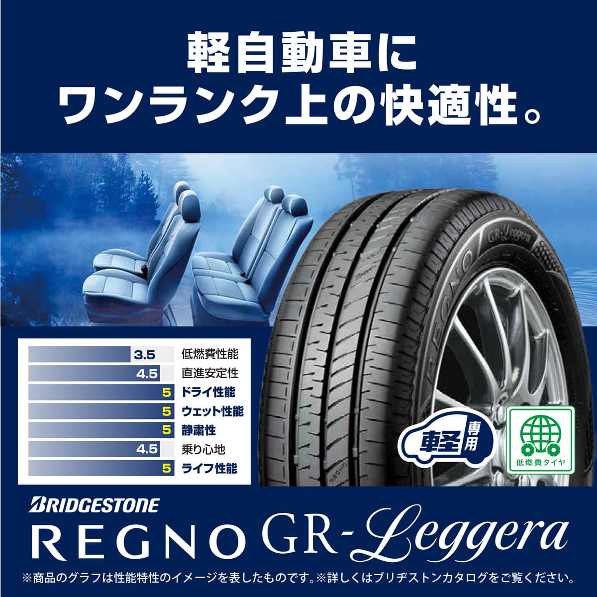 GR-Leggera専用に非対称形状・非対称パタン・高剛性トレッドを採用することでふらつきを抑制し、快適な乗り心地を実現。また「パワーサイド構造」を採用することで重心が高く、ふらつきやすい傾向があるハイト系軽自動車にも対応。
