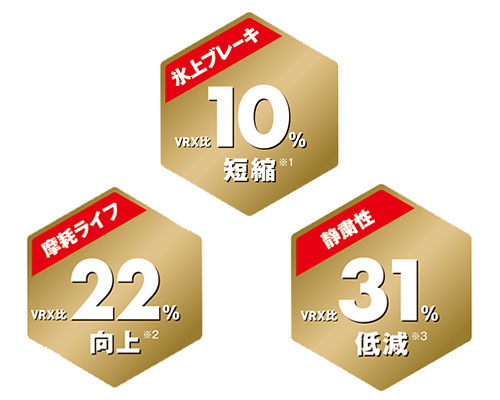 様々な冬道に効いて、しっかり止まって曲がる。より安心の総合性能を実現しています。従来品に比べて静粛性、ロングライフ性能、氷上での効きが向上しました。