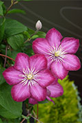 旧枝や新枝から花を咲かせます。見ごたえのある大輪の花が多く、青や紫の名花が多い系統です。年に2回ほど咲きます。