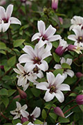新枝から花を咲かせ、和紙のような柔らかい雰囲気の花が特徴の系統です。根が細いので、夏の水切れ・根腐れに注意が必要で、水はけの良い培養土がおすすめです。