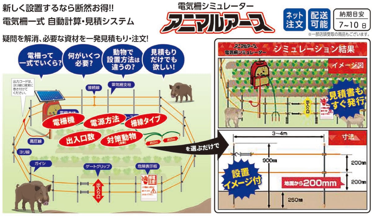 田畑や菜園、住宅地などへの動物の侵入を防ぐ