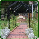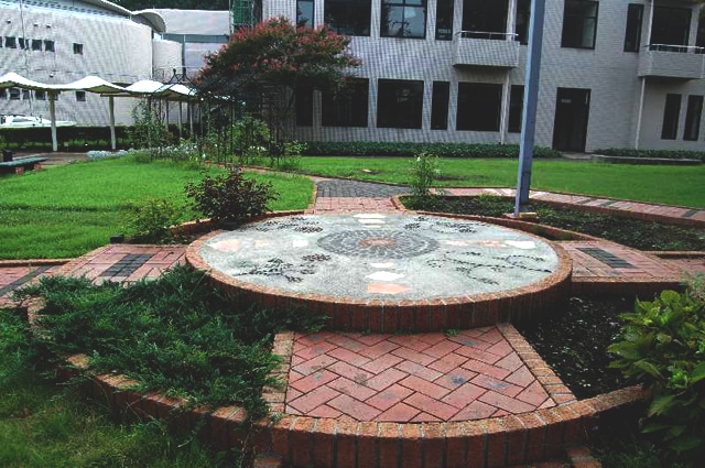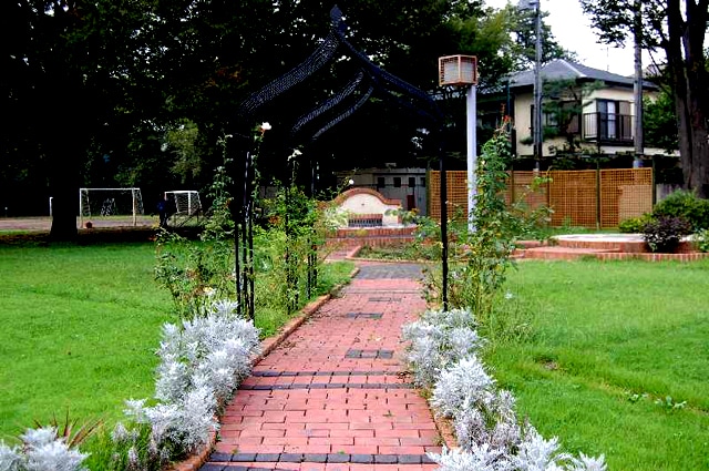 イングリッシュガーデンを感じさせる円形レンガアートが魅力的です。 |