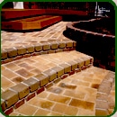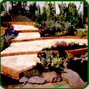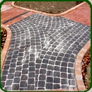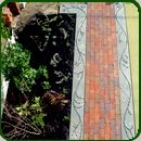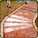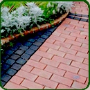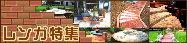 階段や立ち上げ花壇などのカーブ部分にはレンガを半分にしたものを使うとよい。 |