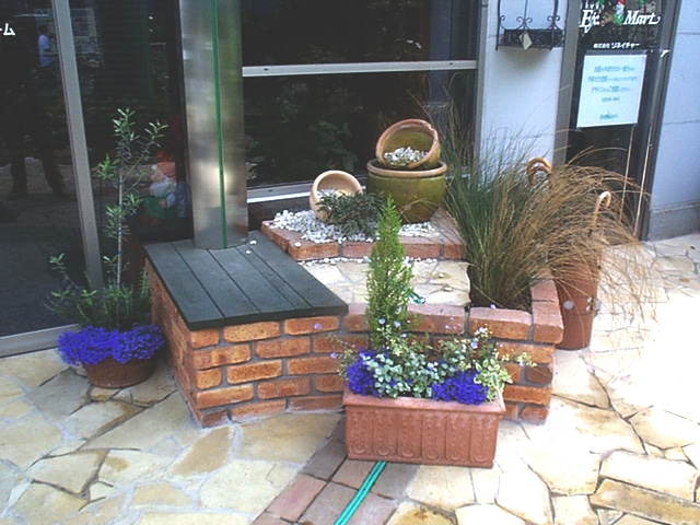 レンガと、違った素材(自然石や、ガラスなど)との組み合わせ。 |