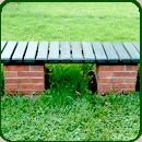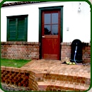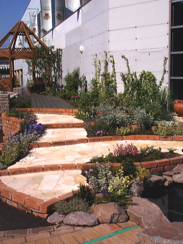 階段の立ち上がりにレンガを用いて、段差をはっきりさせる。 |
