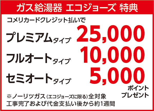 エコジョーズ各種一例 ガス給湯器エコジョーズ