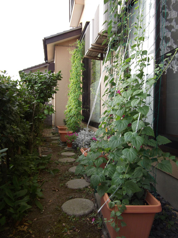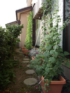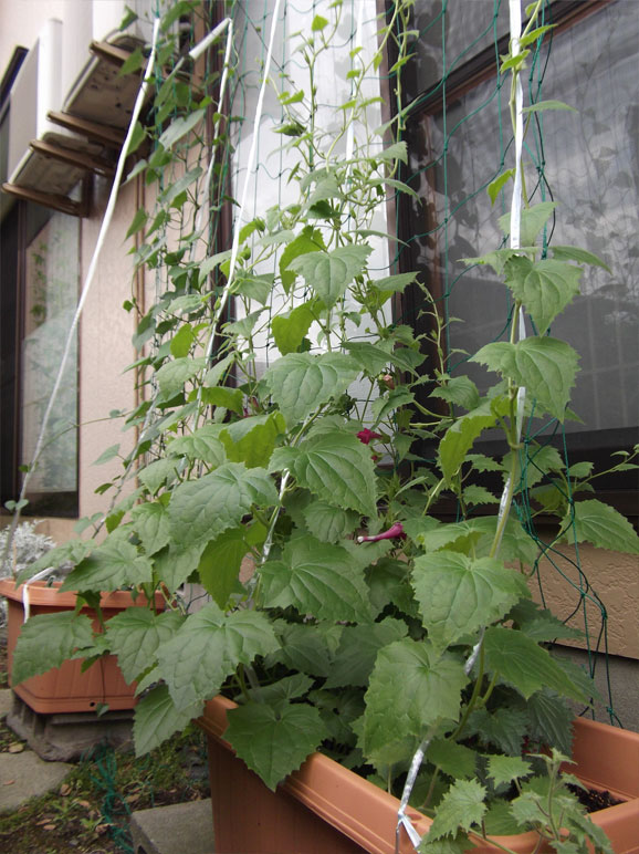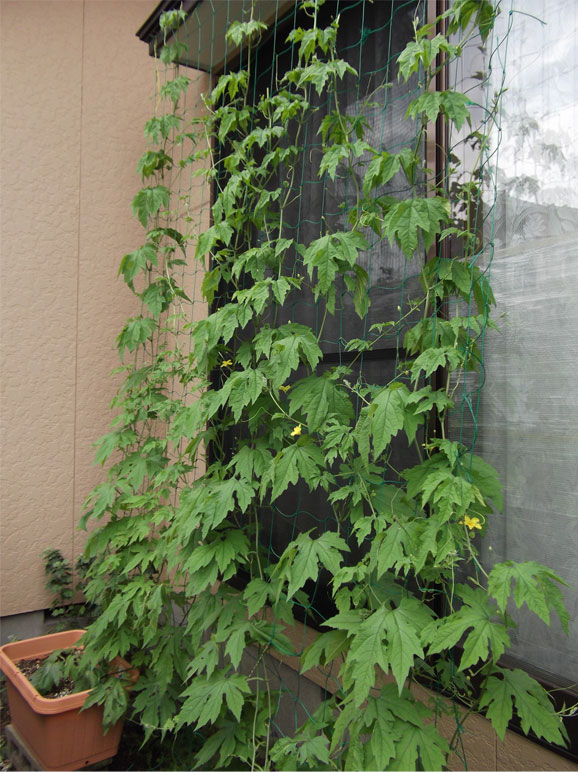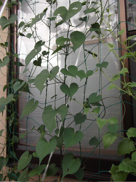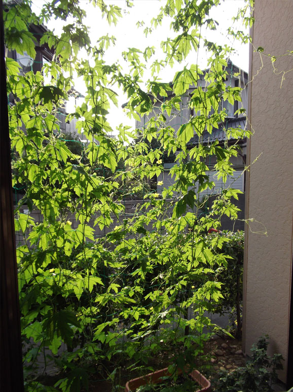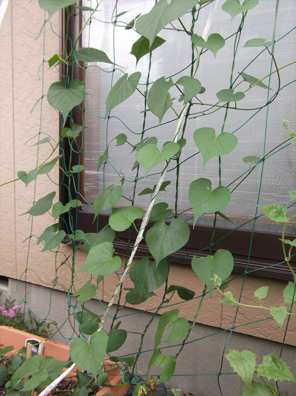 もう少し誘引を続けていけば、窓全体を覆うことができそうです。