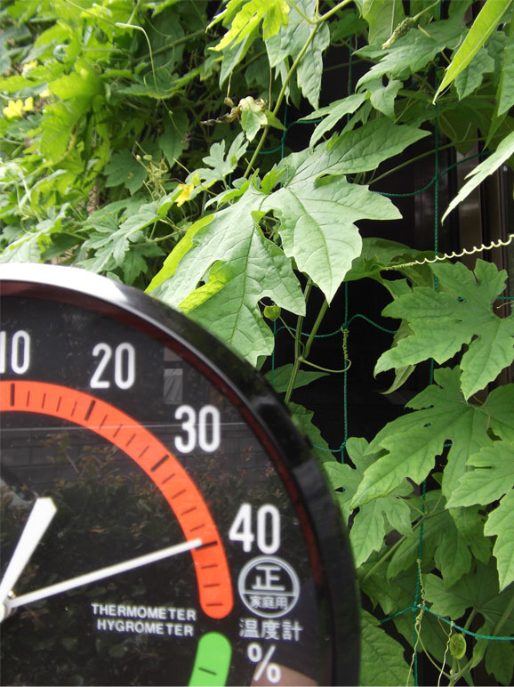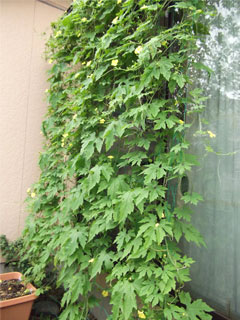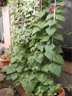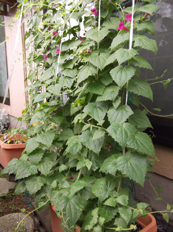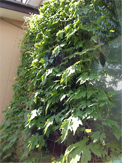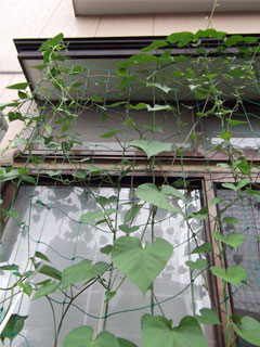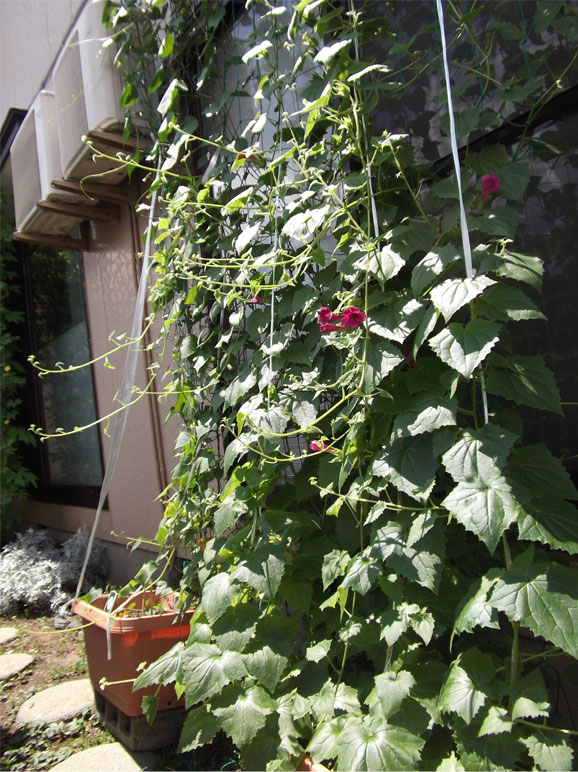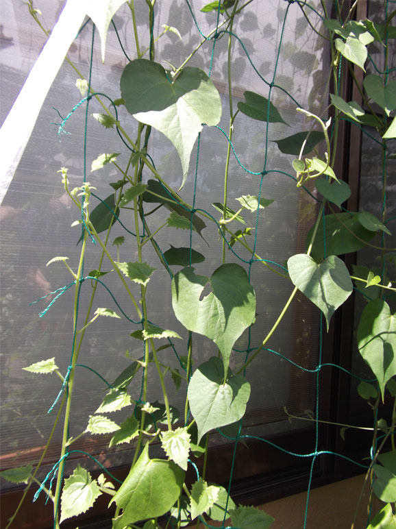 もう少し誘引を続けていけば、窓全体を覆うことができそうです。