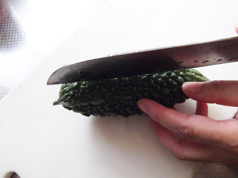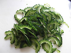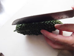 次にゴーヤを薄くスライスします。