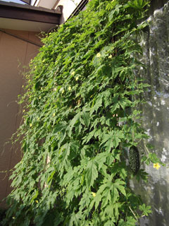 ゴーヤもご覧の通りびっしりと茂っています。