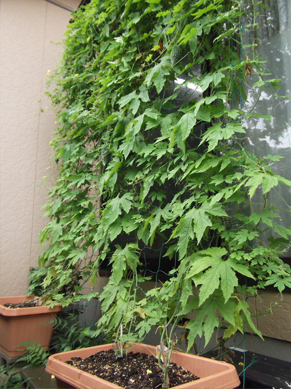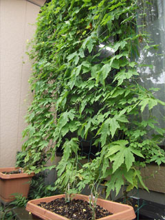 順調に伸び続けている緑のカーテンたち。