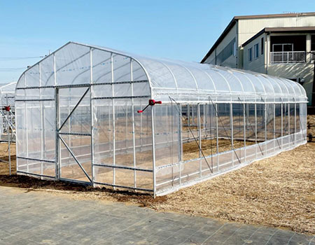 スライド式ドアで出入り楽々な、広々菜園ハウス