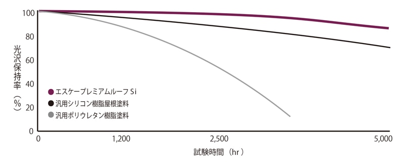 ラジカルコントール技術により紫外線(UV)や水、熱等の劣化要因から屋根材を保護し、優れた耐候性を示します。 -