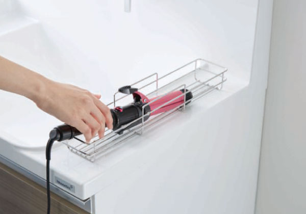 熱くなったヘアアイロンをそのまま置けて使い終わったらラックごと上段引き出し内にしまえます。