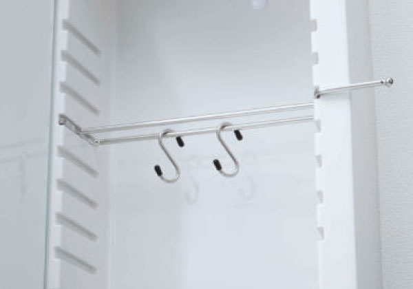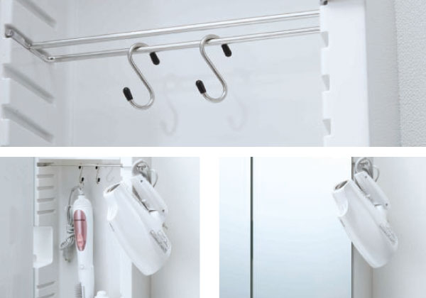 ドライヤーなどを吊り下げて収納できるフックです。(S字フック2個付き)
