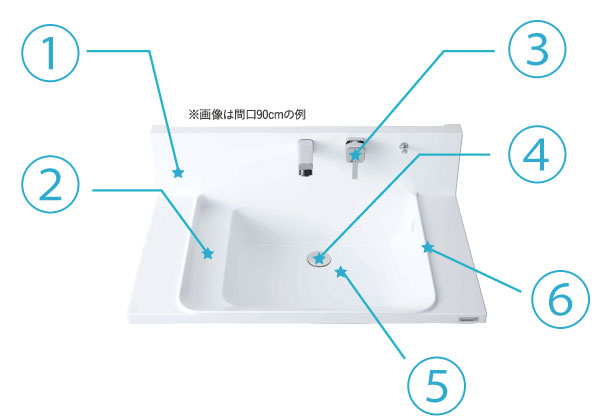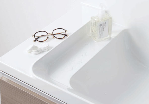 前後に伸びたウェットエリアは、ハンドソープなどを手前に置けるので、小さなお子さまでも届きやすい位置で使えます。