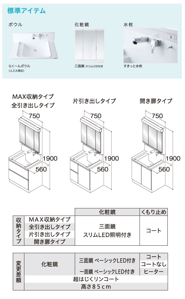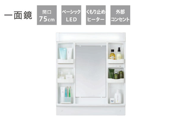 セット販売(施工をご希望の方はこちら) 幅750mm/高さ800mm 1面鏡 3面鏡 スタンダードLED スリムLED 扉