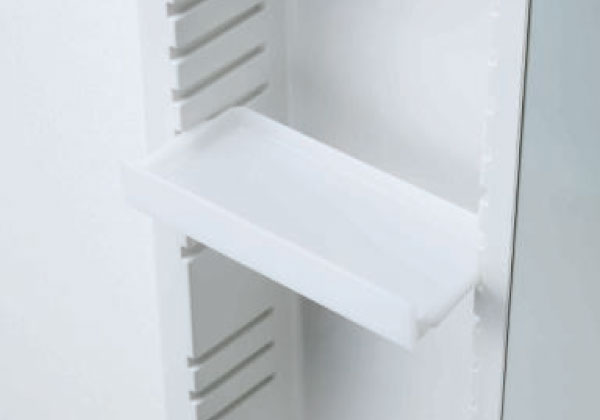 収納するものに合わせて、高さを3cm刻みで変えられるスライドトレーがついています。