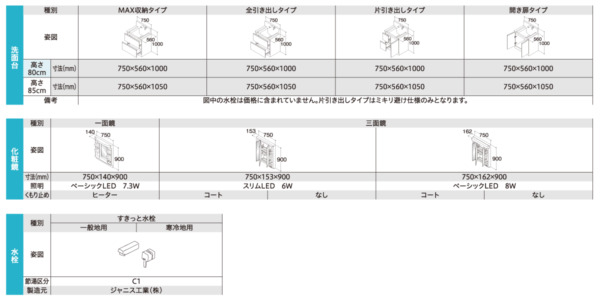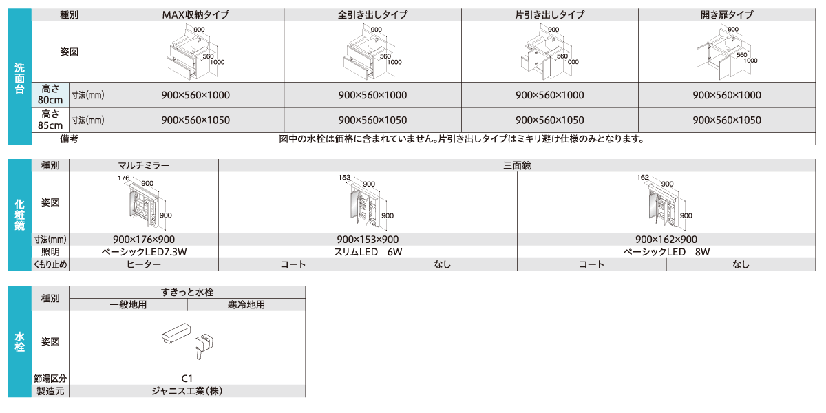 *表示の価格はミラー・水栓・洗面台のセット価格です。