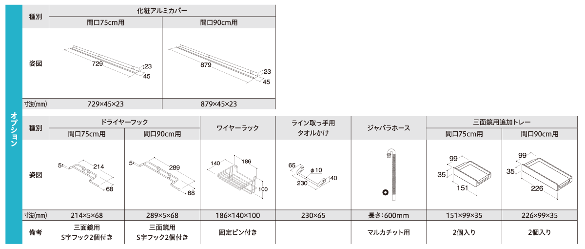 ドライヤーフック オプション(3面鏡タイプのみ選択可)