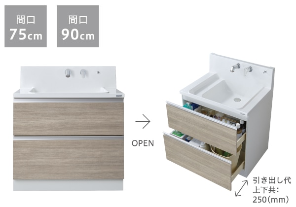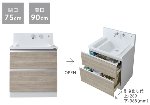 優しく静かにしまるブルモーション引き出しに、ちびマルBOX、ホッとラックがついた収納充実のタイプです。