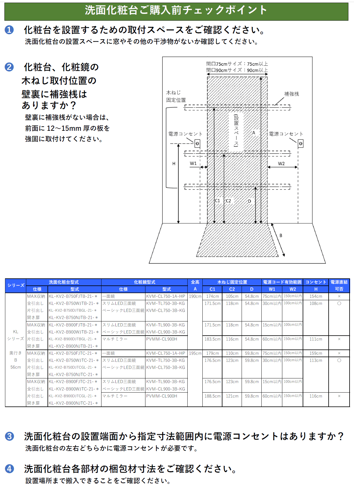 *サイズ・カラーによってはお選びいただけないミラー・洗面台がございます。幅750mm