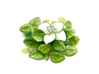 フェルトのような質感のまるみを帯びた葉は、はうように広がり、寄せ植えやハンギングのわき役として大活躍します。灰青色、ライム、斑入りなど多彩な葉の品種があります。摘芯すると良く茂りますが、茂りすぎて蒸れたり根詰まりを起こしたりすると下葉から枯れてくるので、時々切り詰めてすいてやると良いでしょう。挿し芽で簡単にふやすことができます。春には小さい黄色の花を咲かせます。
