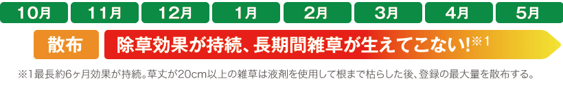 ネコソギ粒剤は1回の散布で約6ヶ月間効果が持続。枯らしても生えてきてしまう雑草は困りものでしたが、ネコソギ粒剤なら、春にまけば秋まで、秋にまけば春までキレイが続きます!無処理区と比較してもこの通り!!